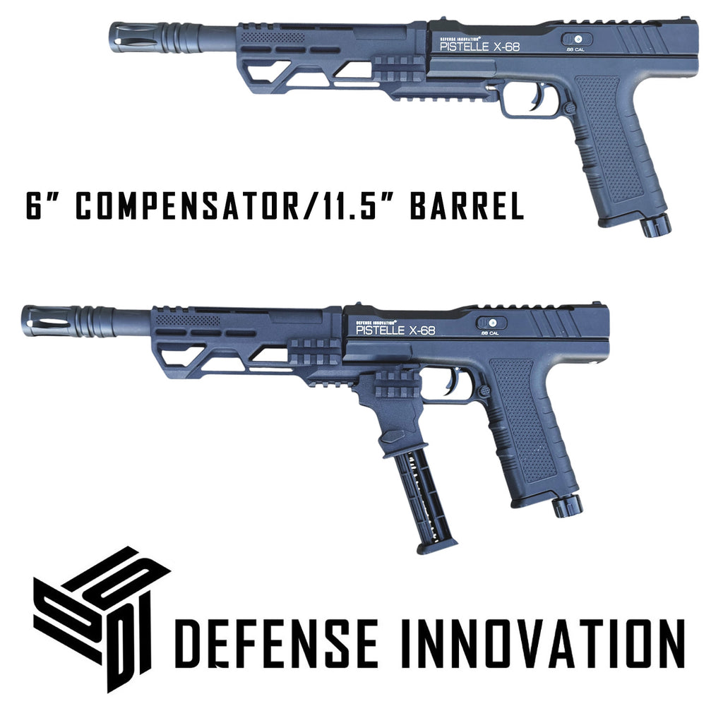 Adding the compensator along with an extended barrel significantly increases power, range, and accuracy—boosting overall shooting performance. Simply put, the longer the barrel, the more power you can generate from your launcher.